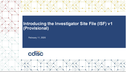 CDISC mentioned in their webinar that the ISF model will be supported by implementation guidance, further training, and integration with the TMF Standard Model, with a v2 planned for 2027. This shows that ISF standardisation is not a one-time publication, but part of an evolving governance framework.